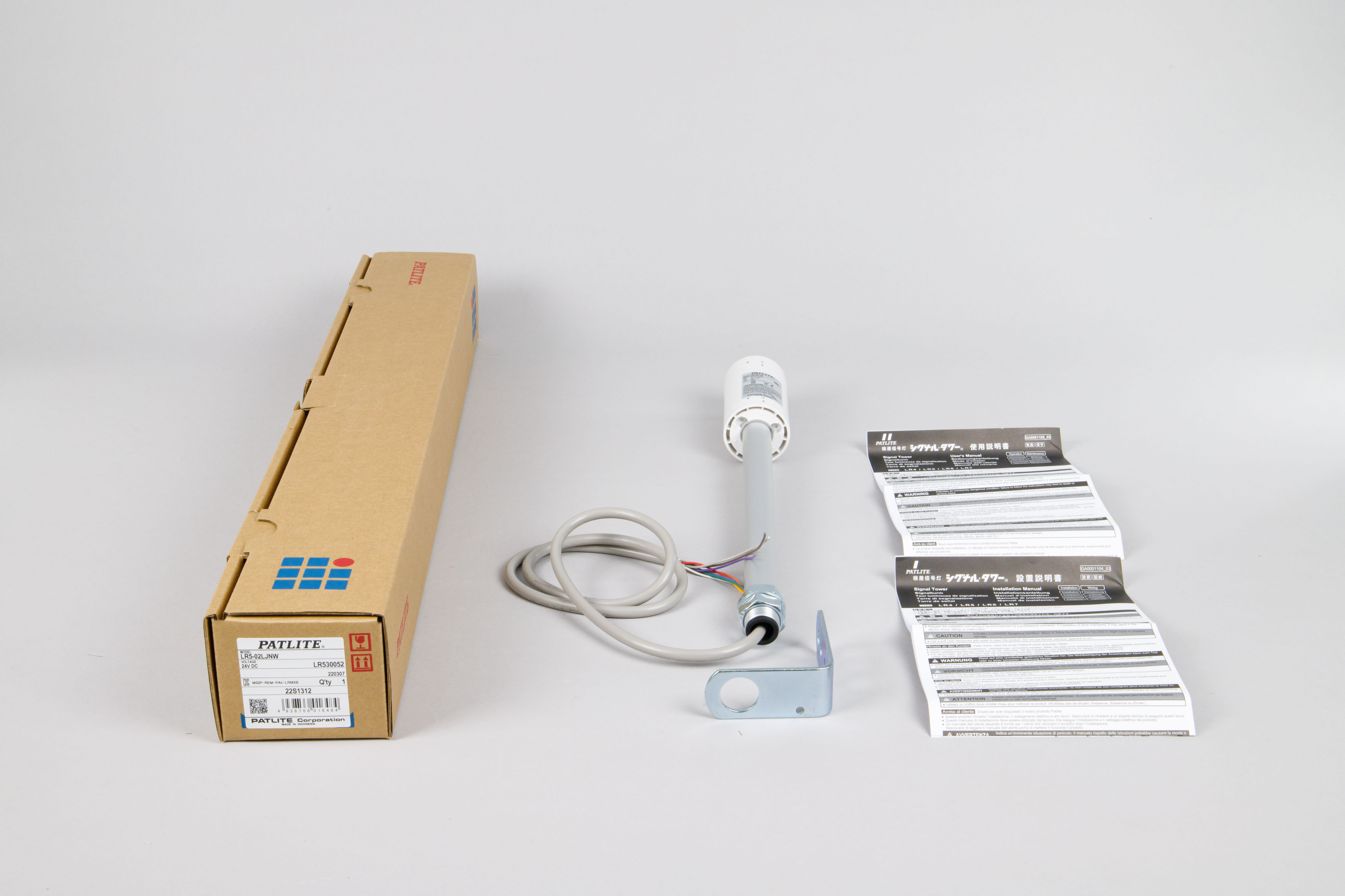 LR signal towers provide illuminated and optional audible status indication for machines and systems.Delivering superior visibility and sound for unambiguous indication, robust construction for harsh, wet environments, and a modular system for easy customizations, the LR Series is equipped to solve the most challenging applications. Modular design ¿Twist and Lock¿, to easily customize and field configure LED units and sound modules. Smooth surface design and a rugged body construction for performance in harsh environments, carrying an IP65 protection rating. Unique lens and light module construction, the LR series provides brilliant, even light for visibility at further distances. Completely enclosed sound module, maintains substantial water and dust protection while producing loud, omni-directional sound. Features and Conformity Standards, Base module, 50mm diameter, 24VDC, Off-white, Pole with L-angle bracket, Cabtyre cable, IP65(IEC 60529) / NEMA TYPE 4X, 13, Conforms to the CE /UKCA requirements, UL Recognized Components (File No. E215660), UL 508, CSA-C22.2 No.14, FCC Part 15 Subpart B Class A, RoHS Directive (EN IEC 63000), EMC Directive (EN 61000-6-4, EN 61000-6-2), KC (KN 61000-6-4, KN 61000-6-2), Low-voltage Directive (IEC/EN 60947-5-1, EN62471)