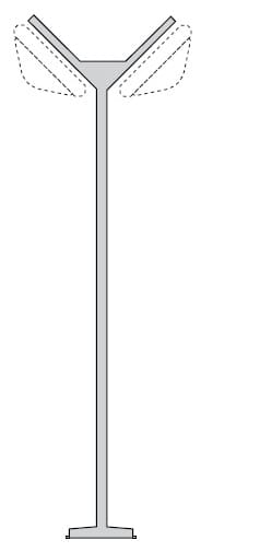 Palo in alluminio per alloggiare uno o due apparecchi, costituito da: Palo in alluminio estruso verniciato per alloggiare uno o due apparecchi su mensola. Mensole in tecnopolimero autoestinguente. Scatola di derivazione in tecnopolimero autoestinguente con morsetto a 4 poli 16 mm2. Altezza del palo: 2045 mm
