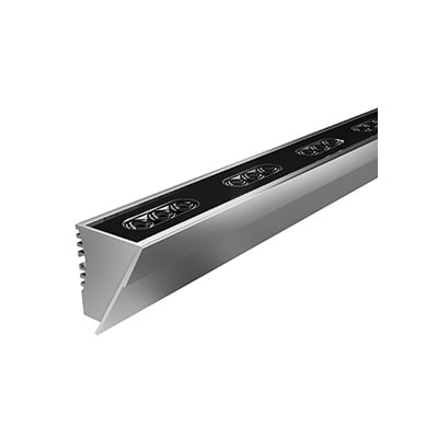 Apparecchio da parete per interni ed esterni costituito da:Corpo in alluminio estruso anodizzato. Diffusore in vetro temperato e serigrafato. Classe III. Testate in Acciaio Inox AISI 304. Ottica simmetrica. Dissipatore termico in alluminio. 20W. 3000K. 2016 lm.