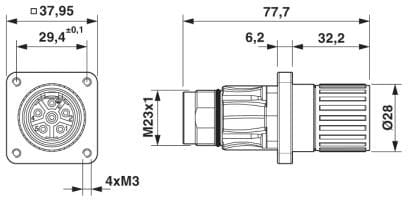Wanddurchführung Stift/Buchse, gerade, M23, M23, Polzahl: 5+PE, Kontaktart: Buchse, Crimpanschluss, O-Ring axial, 4xM3, geschirmt: ja, Kabeldurchmesserbereich: 0 mm ... 0 mm