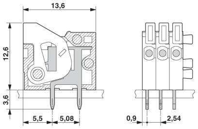 • Winkel Leiterplatte/Leiteranschluss - 0°/180° (horizontal)