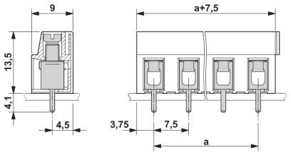 Winkel Leiterplatte/Leiteranschluss - 0°/180° (horizontal)