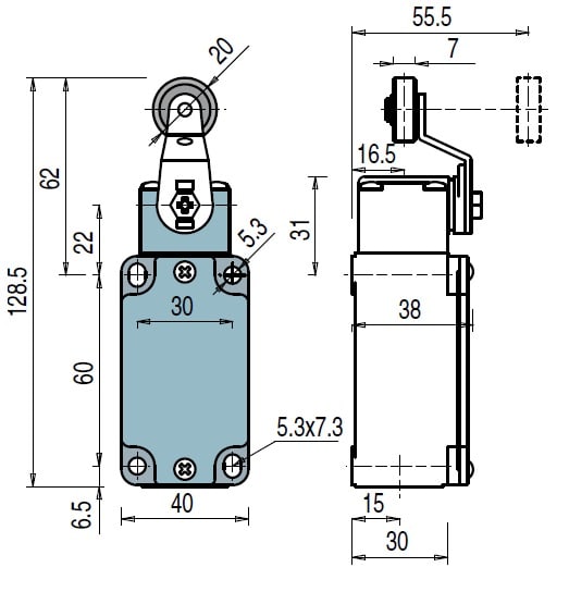Höhe des Sensors - 128.5 mm