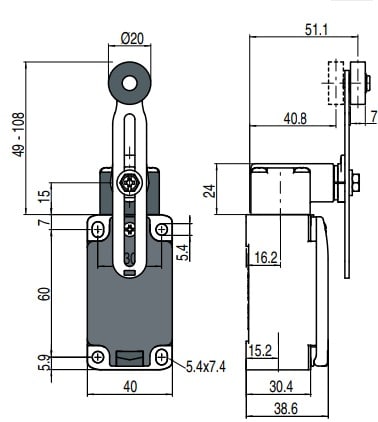 PIZZATO ELETTRICA - PZZFP 535-K60 INTERRUTTORE DI POSIZIONE A LEVA GIREVOL - FP 535-K60