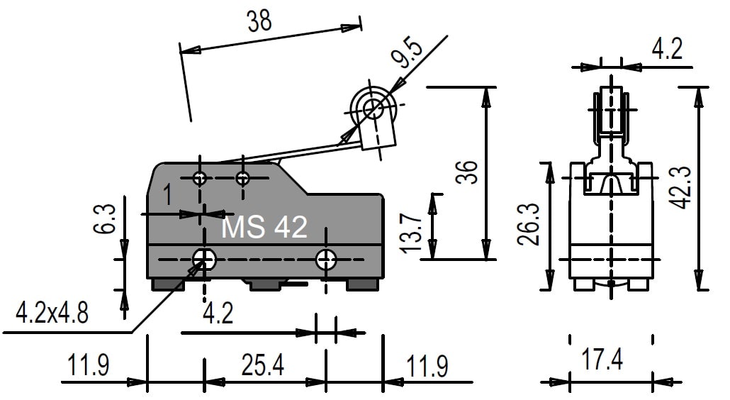 PIZZATO ELETTRICA - PZZMS 42 MICROINTERRUTTORE A LEVA CON ROTELLA - MS 42