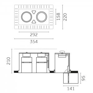 REGGIANI SPA ILLU - REGX.RM54E.HC12 YORI EVO REC SQUARE D95 2X17W TRL PC FM - X.RM54E.HC12
