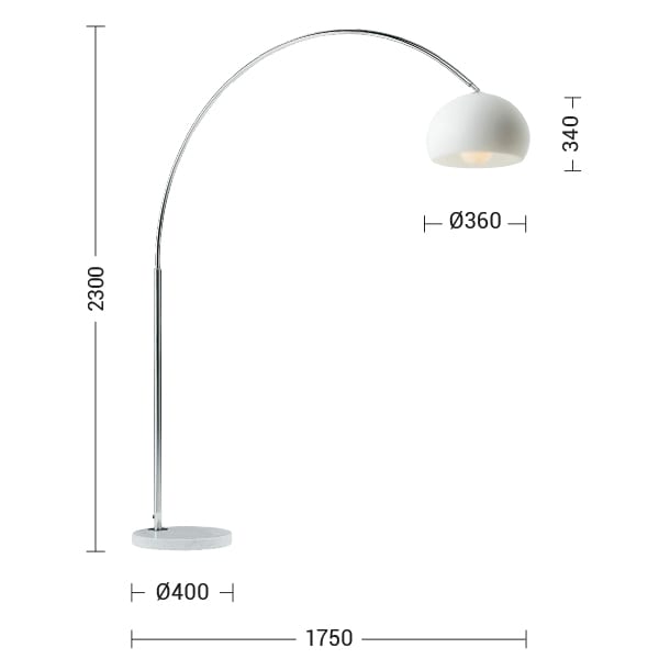 Lampada da terra telescopica ad arco in metallo cr omato, con base in marmo bianco di Carrara o neroMarquinia e diffusore in metacrilato. Proposto nel la versione a luce diretta (attacco E27, finiturabianca, nera o cromo) o a luce diretta e indiretta (attacco R7s, finitura bianco, nero o nickel). Nela versione biemissione il diffusore ? orientabile e ha un vetro satinato, a copertura della fonte luminosa, che permette l?emissione di luce verso il basso.