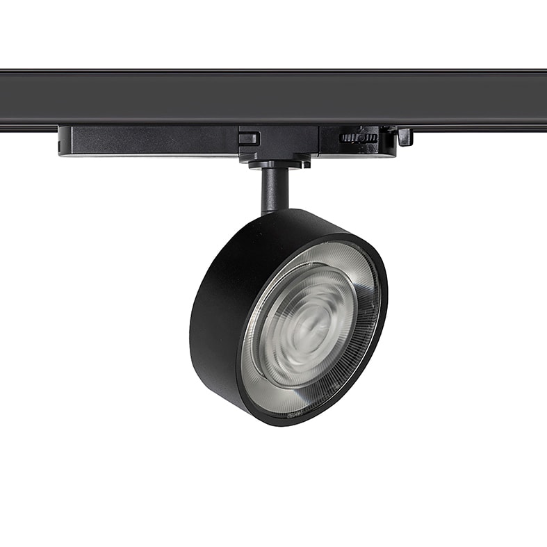 Proiettore LED di forma tonda con alimentatore integrato per illuminazione puntuale. Applicabile a parete, a soffitto, a sospensione e a binario (installabile su binario trifase GROOVE evo e YAKI evo). Disponibile con base nera o bianca, con anello in sei finiture (bianco, nero, cromo, oro, bronzo, rame). Orientabile su due assi di 355° rispetto all'asse verticale e di ±90°rispetto all'asse orizzontale. Proposto con ottica di 38° e disponibile ottica da 12° da ordinare separatamente come accessorio. Struttura in pressofusione di alluminio verniciato con polveri. In virtù dell'ottima resa cromatica (CRI>90) e della versatilità di utilizzo, il prodotto è adatto per ambienti retail, residenziali e spazi museali.