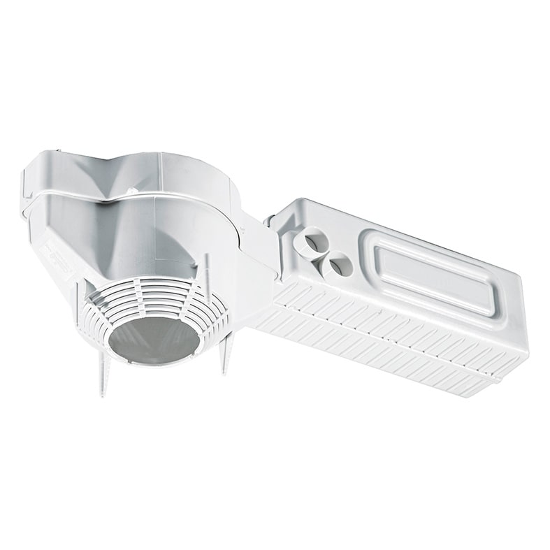 Cassaforma universale in materiale plastico con foro adattabile da 50mm a 103mm (mediante rimozione degli anelli in plastica fino al raggiungimento del diametro desiderato) per l'alloggio di faretti ad incasso in soffitti e pareti in muratura e cemento armato. Corredata di scatola per alloggio del driver. Potenza max supportata 8W.