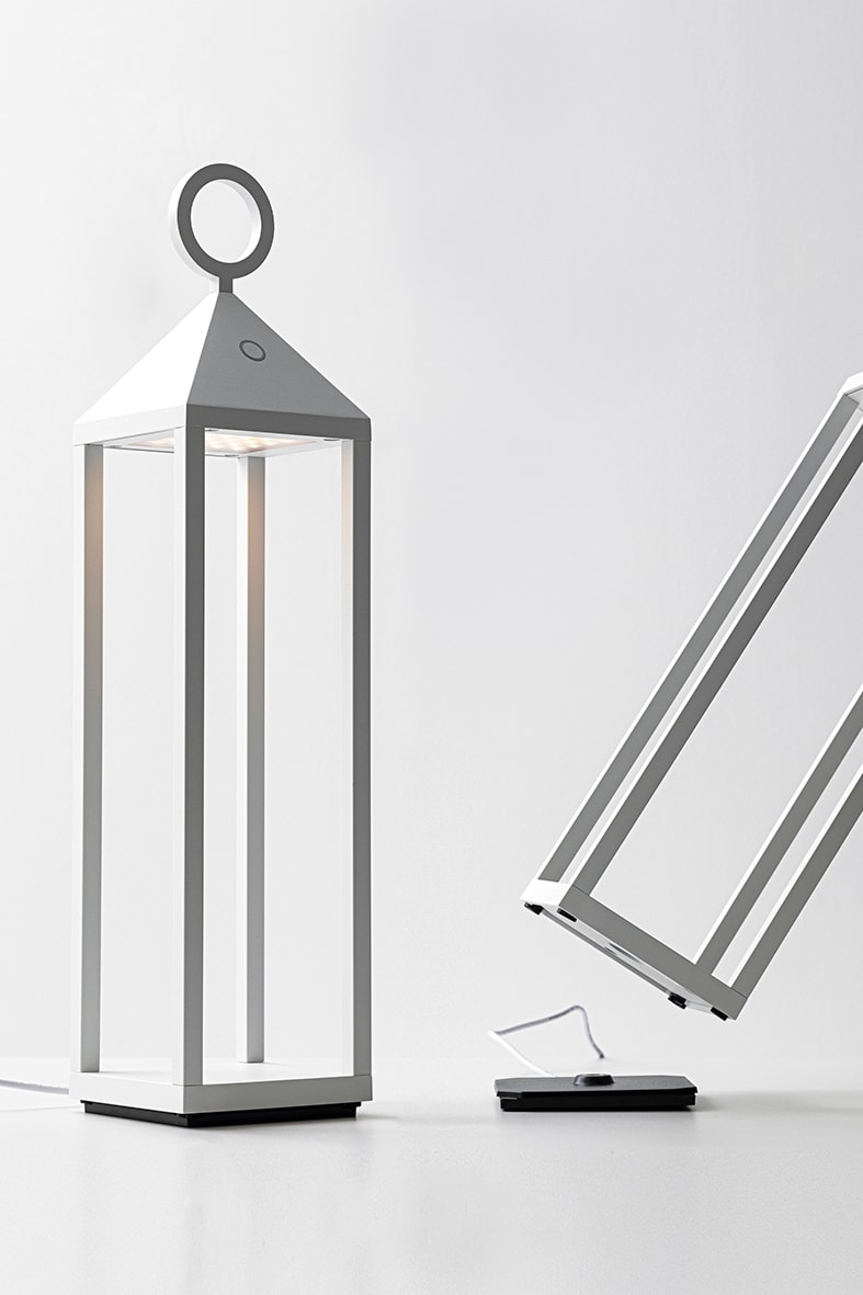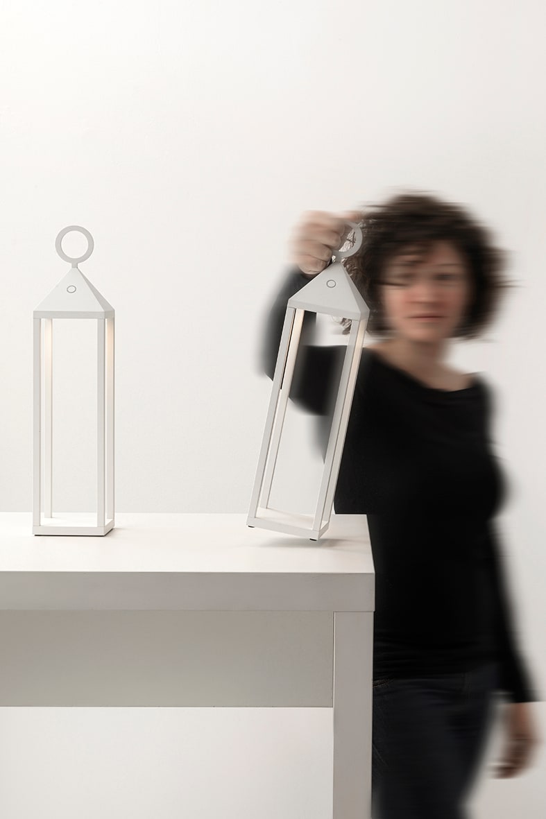 Lampada da tavolo a LED (2700K), portatile e ricaricabile, ideale per illuminare terrazze e giardini, ma perch? no, anche per rallegrare il tuo pic-n ic al parco. Una lampada senza fili, che ti segueovunque tu voglia andare. Struttura in pressofusio ne di alluminio verniciato con pretrattamento peruso da esterno (IP54). Accensione con interruttore touch dimmer e ricarica a contatto tramite l'apposita base, durata della batteria 12 ore. Disponibile in tre colori (bianco, antracite e corten) e in tre altezze. Possibilit? di installazione a sospensione tramite cavo e corda in finitura ecr? (5 mt) e a parete tramite gancio da ordinare come acces sorio.