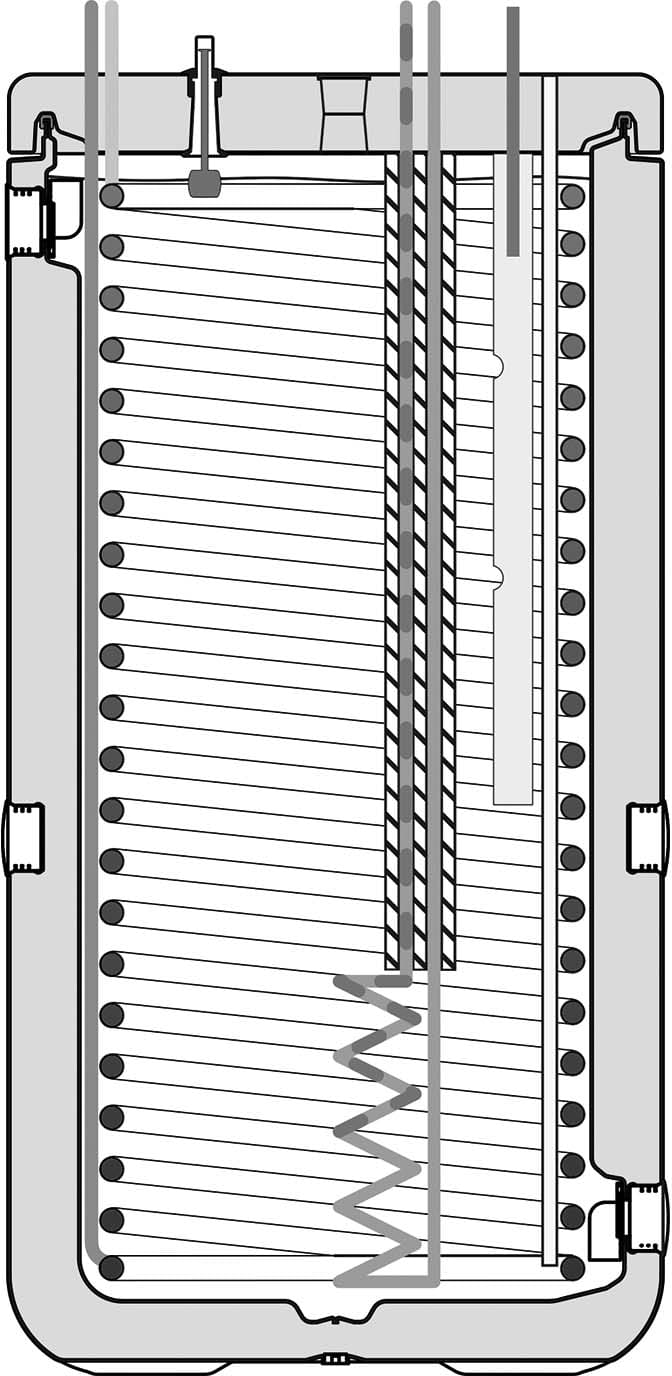 DAIKIN propone Accumulatore di calore per produzione di acqua calda sanitaria Sanicube Accumulatore d'energia ad alto rendimento da 500 litri per la produzione di acqua calda sanitaria, integrazione del riscaldamento e per funzionamento bivalente con generatore di calore supplementare. - Accumulatore di calore in plastica con scambiatori termici in tubo corrugato in acciaio inossidabile - Capienza 500 litri - Combinazione tra accumulatore di energia e scaldacqua istantaneo per la produzione di acqua calda sanitaria - Igiene dell'acqua ottimale - Opzione solare integrata per sistemi solari termici Drain-Back (DB) o in pressione - Possibilità di combinare più serbatoi di accumulo per costruire sistemi in grado di soddisfare grandi utilizzi di acqua calda