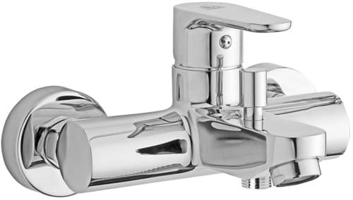 Miscelatore vasca/doccia con deviatore senza set doccia, completo di: • aeratore M28x1 • set 2 eccentrici 1/2”x3/4”G e rosoni. Finitura cromo