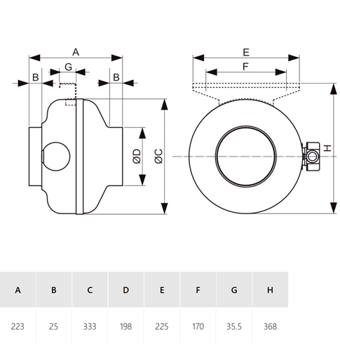 Ventilatore centrifugo per installazione su canali circolari , realizzato in lamiera d’acciaio zincata con alto grado di protezione alla corrosione. Motore IP44, monofase, con motore a rotore esterno con protezione termica. Modello VENT-200NK (220-240V50/60HZ) N8...