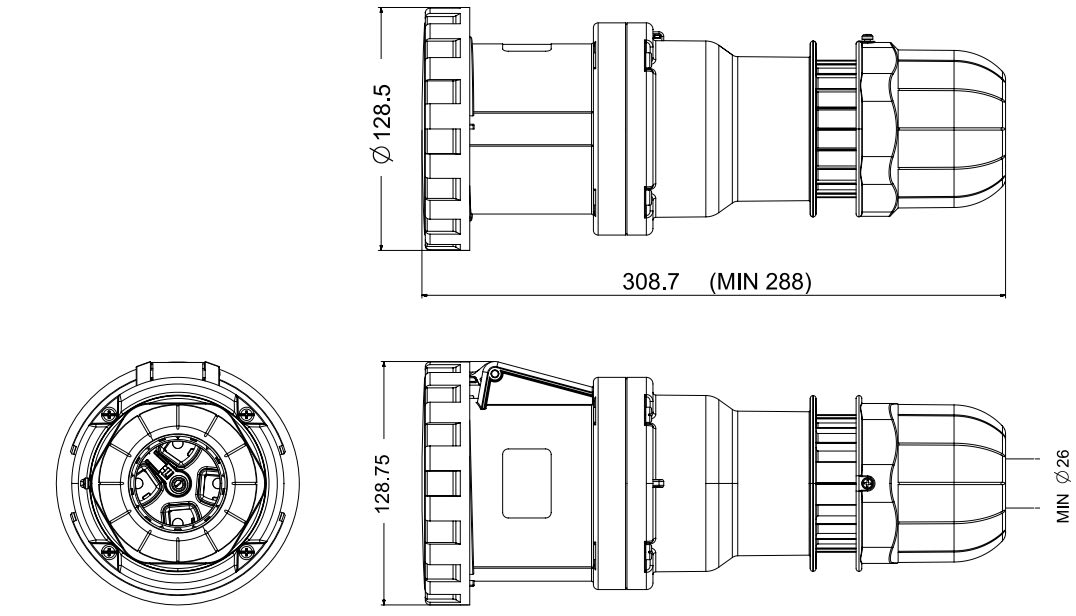 SCAME PARRE SPA - SCA318.12544 PRESA MOBILE 125A 3P+T 9H IP66/IP67/IP69 - 318.12544