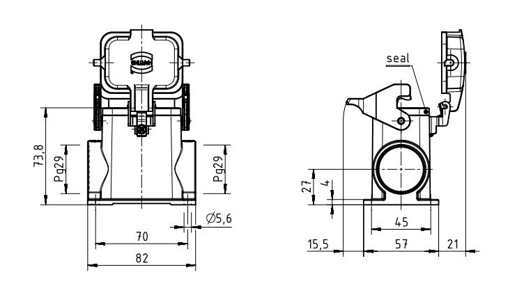 CUSTODIA FISSA+COPERCHIO 1 LEVA 6P PANNELLO 2 USCITE PG29