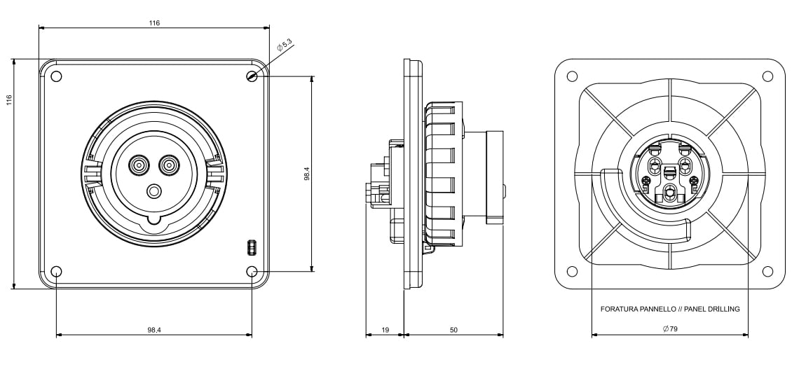 SCAME PARRE SPA - SCASCM320B6W SPINA DA INCASSO 20A 2P 3W 6H IP67 250V - SCM320B6W