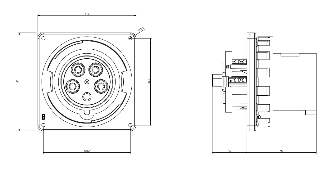 SCAME PARRE SPA - SCASCM5100B9W SPINA DA INCASSO 100A 4P 5W 9H IP67 - SCM5100B9W