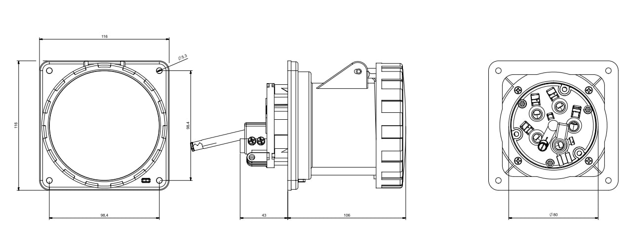 SCAME PARRE SPA - SCASCM560R5W PRESA FISSA 60A 4P 5W 5H IP67 - SCM560R5W