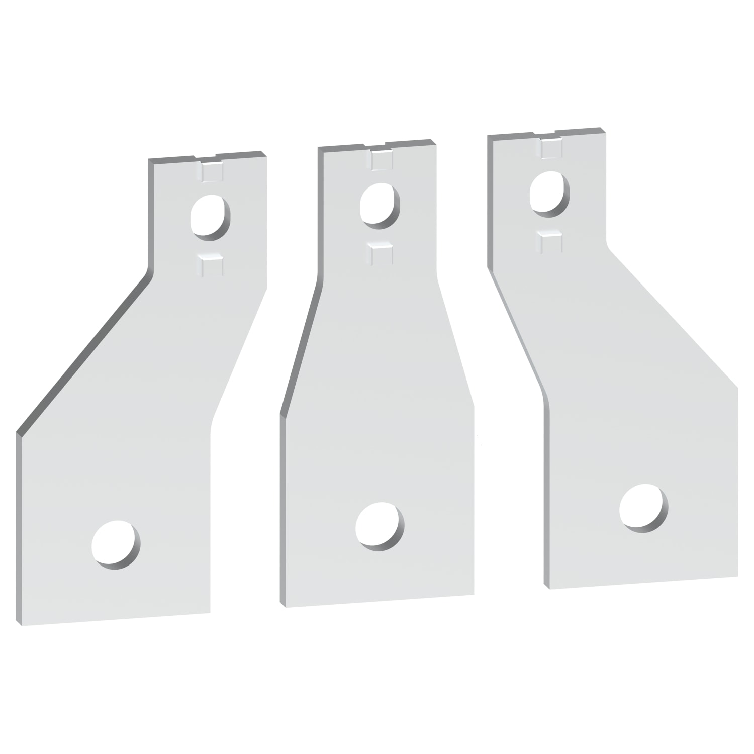 Questi accessori sono terminali di prolunga dritti per contattore TeSys Giga 400-500, collegamento di 50 mm di larghezza. Viene utilizzato per il circuito elettrico a 3 poli. Vengono avvitati ai morsetti del contattore per aumentare il passo per poli di 50 mm di larghezza. Può coprire temperature ambiente di funzionamento da -25°C a 60°C, senza declassamento fino a 3000 m di altitudine.