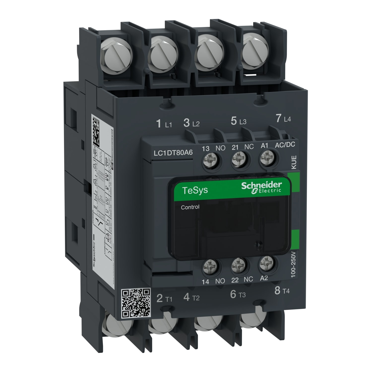 SCHNEIDER ELECTRIC - SNRLC1DT80A6KUE CONT 80A 100-250VAC/DC GREEN CAP OC 4P - LC1DT80A6KUE