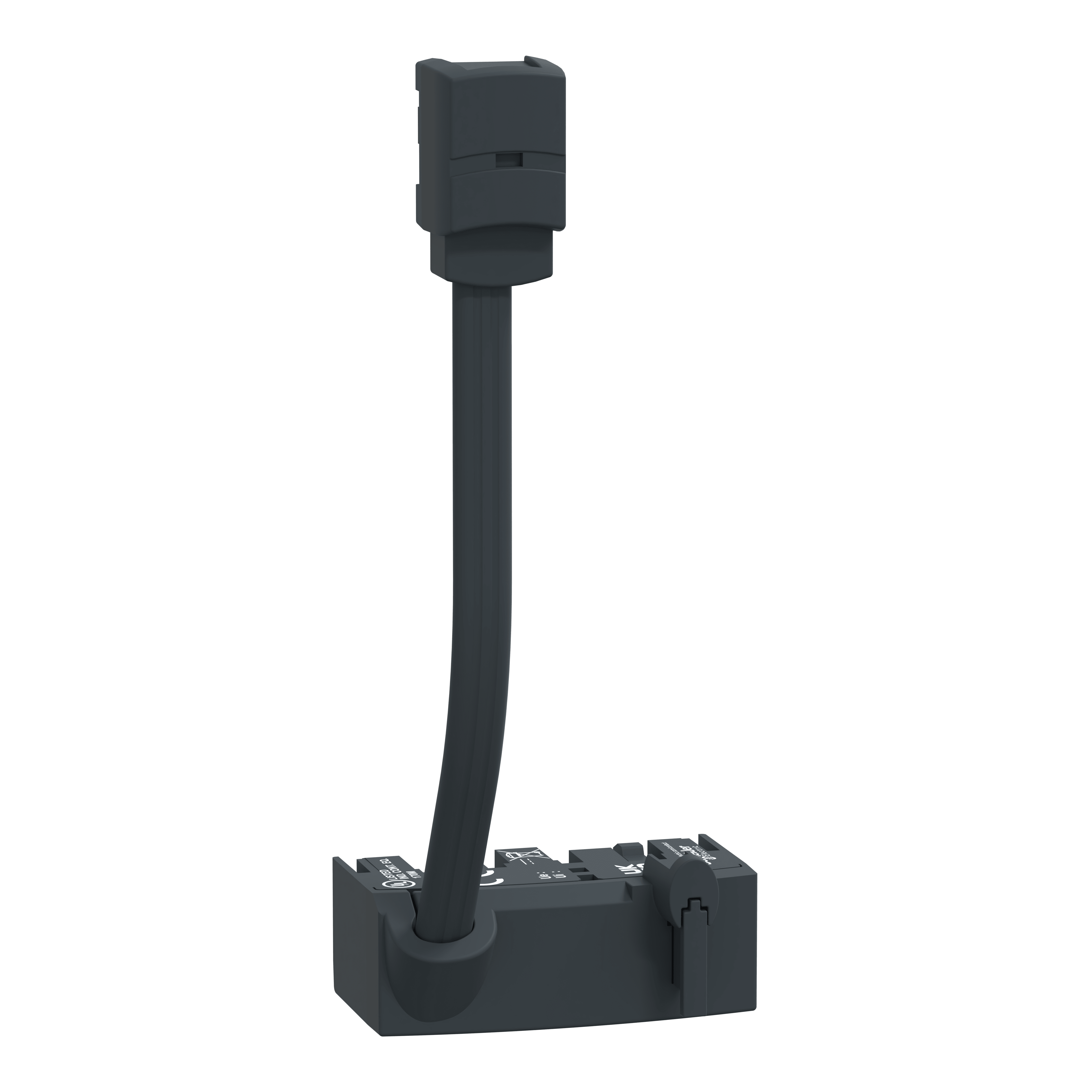 morsettiera di collegamento TeSys U da inserire in una base di potenza di inversione LU2B12*, LU2B32*, LU2B38* per il controllo centralizzato di un controller dello starter. Da utilizzare per il controllo ON/OFF di applicazioni del motore di inversione con il controllo remoto Profibus DP, CANopen, DeviceNet, Advantys STBl. Fornisce morsetti a vite per collegare i contatti ausiliari interni 1NO+1NC e un cavo di controllo precablato da collegare a un modulo di comunicazione LULC07, LULC08, LULC09, LULC15 (da ordinare separatamente). È alimentato dal modulo di comunicazione associato.