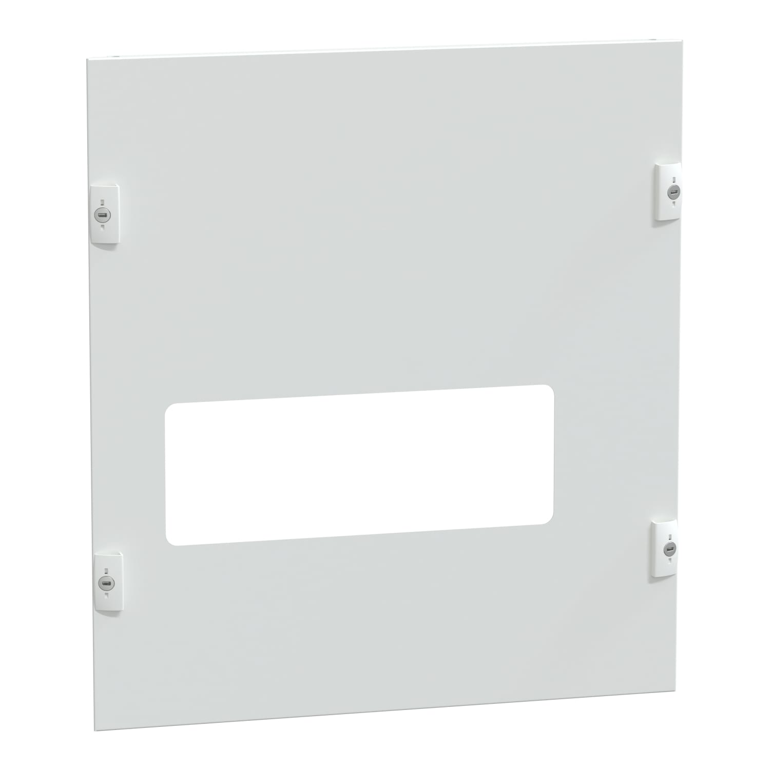 PrismaSeT P front plate for Transfer Pact 250A, 3P/4P. Type of front plate is cut-out plate. Number of device per horizontal rows is one, with vertical 11 modules. To be part of a PrismaSeT P vertrcal mounted front plate. for floor-standing enclosure - width 650/650 + 150 mm depth 400 mm. Front plate made with Epoxy powder coat treated sheet steel. matt/textured surface finition with white (RAL 9003). Ambient air temperature for operation is from 25 to 55 °C conforming to IEC 61439-1/ IEC 61439-2.