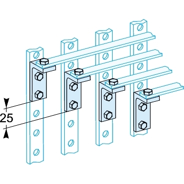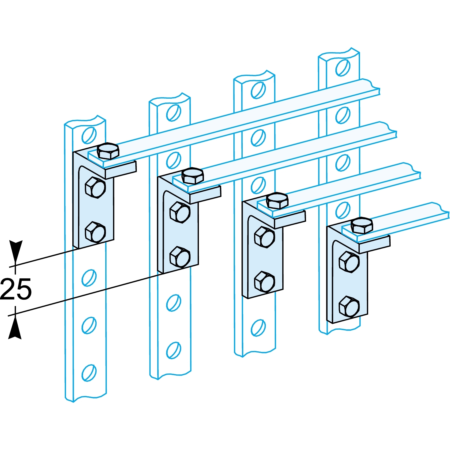 La staffa angolare è un set di 4 staffe angolari in rame di alta qualità progettate per un montaggio sicuro e affidabile negli impianti elettrici. Le staffe hanno una corrente nominale di 250 A e sono quindi adatte a un'ampia gamma di applicazioni elettriche. Le staffe ad angolo fanno parte della gamma Linergy BS, nota per i suoi componenti elettrici robusti ed efficienti.