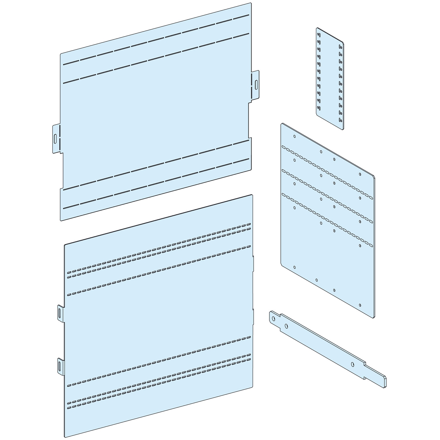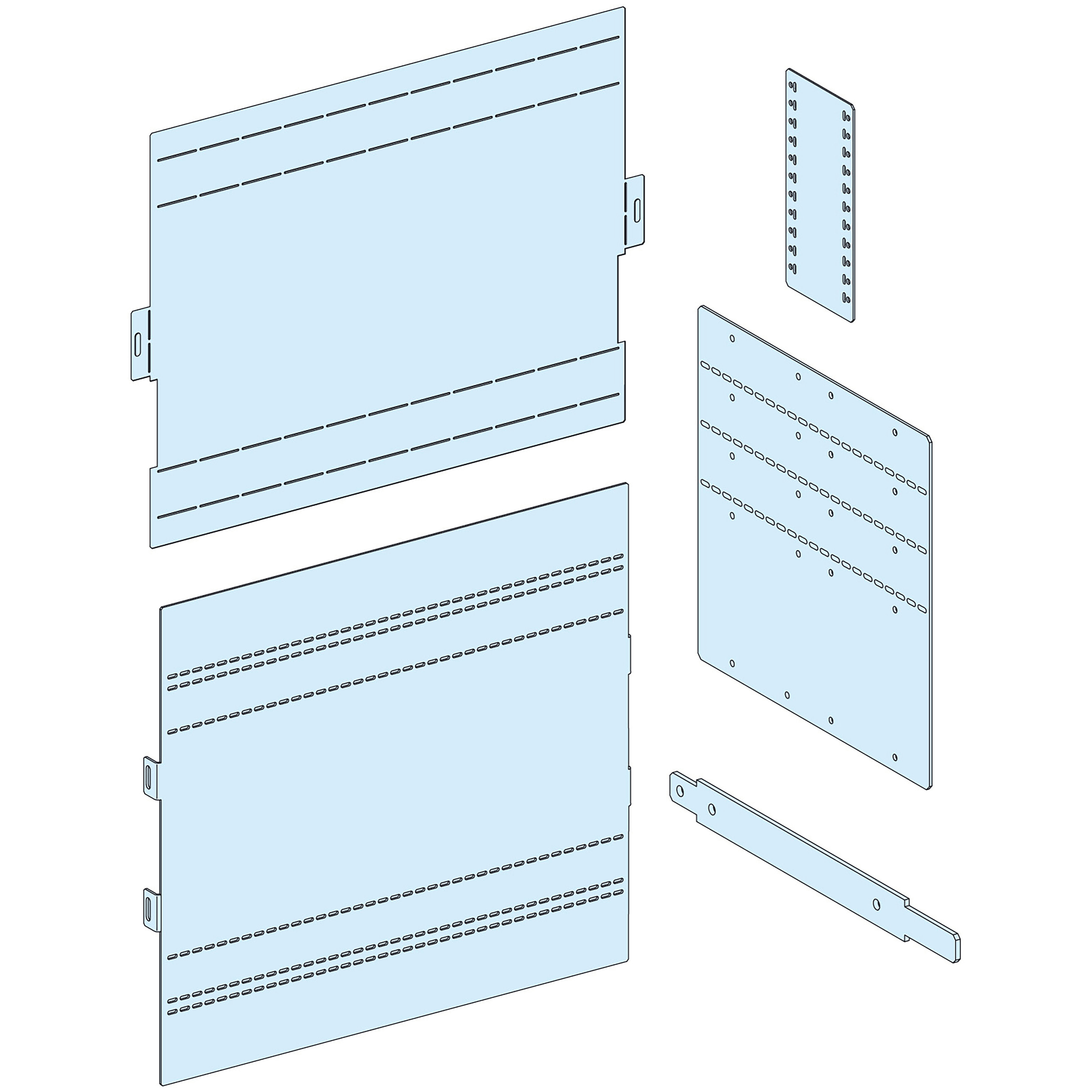 Coperchio dell'armadio PrismaSeT P. È compatibile con vani di larghezza 650 mm. Il coperchio è costituito da polvere epossidica di poliestere opaco (RAL 9003) bianca e ha un numero di moduli verticali di 9.