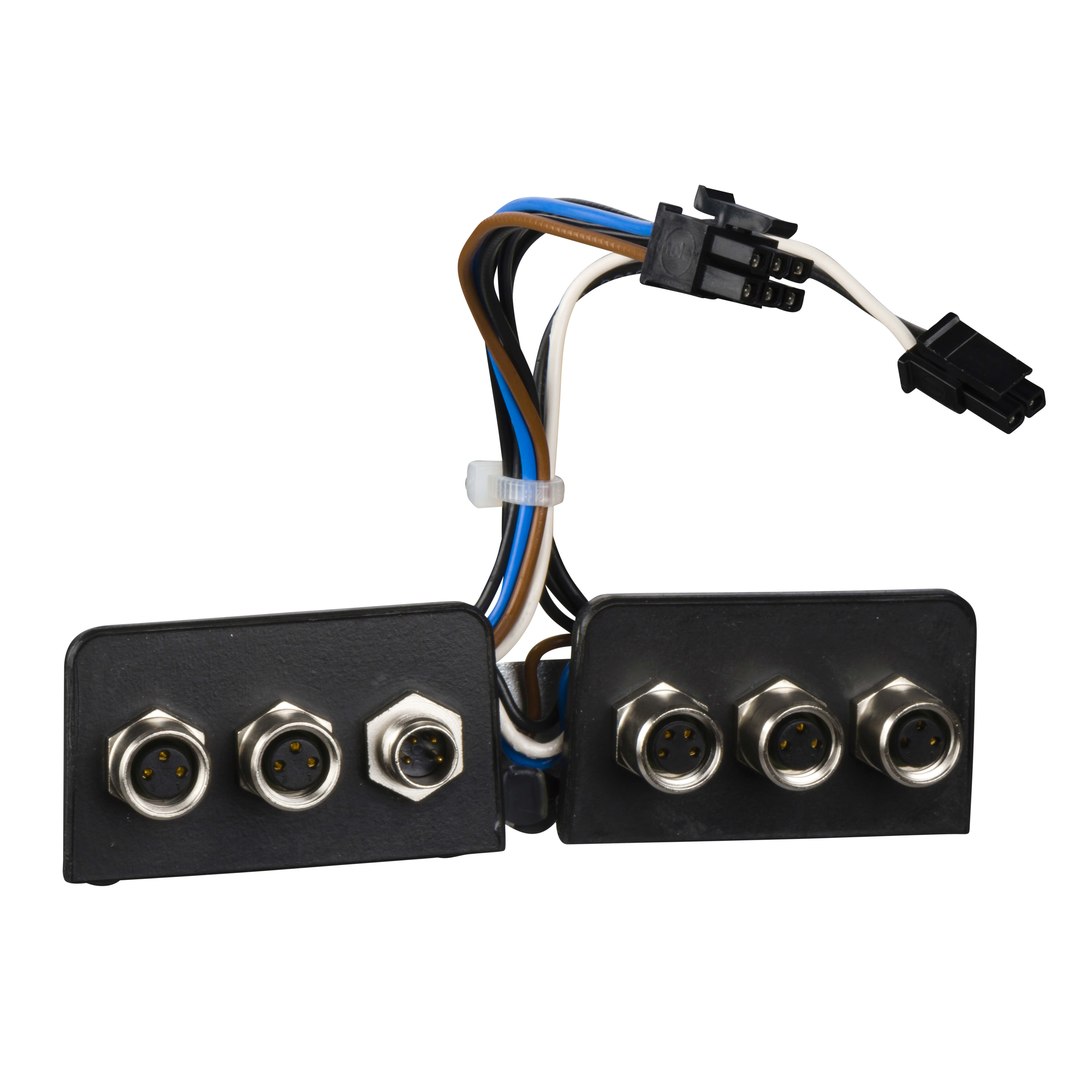 Si tratta di un set di cavi preassemblato per il collegamento della funzione di sicurezza IO e STO su azionamenti integrati. È un accessorio per unità integrate. È un accessorio di collegamento per le unità integrate ILA, ILE e ILS. È costituito da una piastra con 6 connettori come 1 connettore femmina e 1 connettore maschio M8 a 4 pin per i segnali STO e 4 connettori femmina M8 a 3 pin per i segnali I/O. Pesa 0.054 kg. È compatibile con le unità integrate ILA, ILE e ILS. Le unità integrate Lexium sono utilizzate per creare soluzioni di Motion Control decentralizzato in unità molto compatte. Azionamenti integrati per il Motion Control con motore passo-passo, servo o brushless DC.