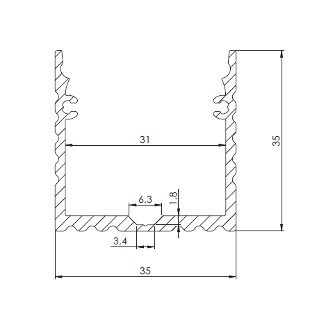SIRIOprofile E35 + copertura prismatica bianca - SIRIO profile E35 è stato studiato per essere estremamente versatile può essere usato come corpo illuminante indipendente per l’illuminazione principale di alberghi, biblioteche, showroom, musei e stand fieristici. Può essere applicato in sospensione dal soffitto sopra i tavoli da lavoro in ufficio, in grandi ambienti open space o piccole sale. Questo profilo si completa con i diversi accessori di cui è provvisto, tutti in alluminio per una finitura più professionale e moderna, come ad esempio i connettori lineari in alluminio, connettori a 90° gradi in alluminio, testate di chiusura e una grande varietà di cover.Con gli accessori per la sospensione si ha la possibilità di realizzare un corpo illuminante d’arredo. Finitura in alluminio anodizzato. Cover in policarbonato prismatica bianca applicabile ad incastro con un semplice click, resistente ai raggi UV. Dimensione: 2000x35x35mm.
