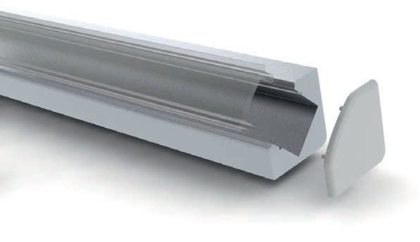 Profilo in alluminio anodizzato con emissione di luce a 45°. SIRIOprofile CORNER è adatto per essere installato nelle applicazioni ad angolo. La luce diretta a 45° dal profilo evita l’abbagliamento di chi sta di fronte alla sorgente luminosa. La grande quantità di alluminio assicura un eccellente raffreddamento anche per le strip LED di alta potenza. Il profilo è dotato di diffusore in policarbonato (bianco, acidato e trasparente) resistente ai raggi UV e rimovibile con un semplice click.
