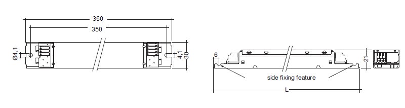 Reattori elettronici per lampade fluorescenti T5. Durata nominale di max. 100.000 h ( con ta 50 ° C e margine d’errore di max. 0,1 % per 1.000 h). Ampia gamma di temperature (per i valori si veda tabella). Flusso luminoso costante a prescindere dalle fluttuazioni della corrente di rete. Advanced Smart Heating per min. 50.000 accensioni senza sostituzione di lampade. Riaccensione automatica a seguito alle sostituzione delle lampade difettose. Spegnimento di sicurezza di lampade difettose e usurate (EOL 2). Predisposto per THD < 10 %. Intelligent Voltage Guard (indicazione di sovratensione e spegnimento in caso di sottotensione). Per apparecchi illuminanti in classe di protezione I e II. Idoneo per i sistemi d’illuminazione di emergenza che ottemperano alla EN 50172. Morsetto IDC (Insulation Displacement Connection) per cablaggio rapido automatico o manuale