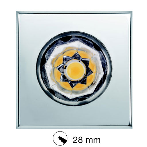 installazione: Incasso a Soffitto/Parete. foro incasso: Foro di incasso diam.28 mm. Spessore controsoffitto: 5-28 mm. fissaggio: Molle in acciaio. corpo / struttura: Corpo in alluminio e anello/cornice in ottone cromato. colore: Cromo. riflettore ottica:Riflettore in policarbonato metallizzato a specchio. equipaggiamento: Guarnizioni in gomma siliconica. vetro / schermo: Schermo in metacrilato trasparente. alimentatore: Non incluso; da ordinare separatamente. corrente: 350mA dc. fascio luminoso: Simmetrico diffondente 45 °. classe isolamento: Classe 3. peso: 0,050 kg. grado IP: 65. filo incandescente: 850 °C. lampada inclusa: si. tipo LED: Power LED. potenza lampada: 3.5 W. flusso lampada: 285 lm. temperatura di colore: 3000K. indice resa cromatica: 80