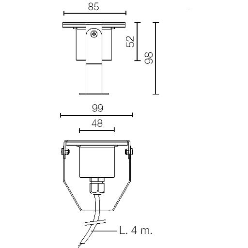 Destinazione d'uso: Esterni, LED. Installazione: Fissaggio a terra/parete - da installare ESCLUSIVAMENTE IN ACQUA Max 40°C. Corpo / struttura: Corpo in acciaio INOX. Colore:Acciaio inox satinato. 8 W. 700 lm.