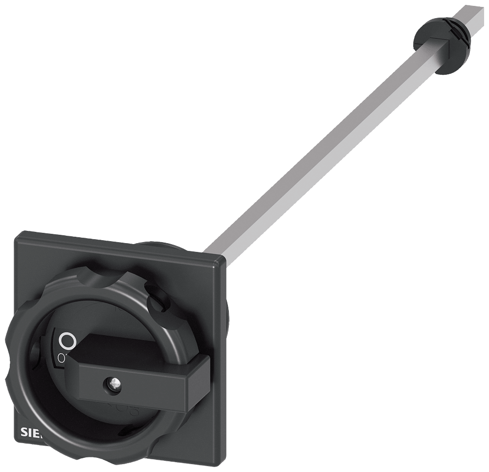 comando rinviato rotativo bloccoporta, nero 66x66 mm, fissaggio frontale fissaggio con foro centrale 22,5 mm con giunto con albero lunghezza 300 mm, 6x6 mm, accessori per sezionatori sottocarico 3LD3 Interruttori principali e di OFF di emergenza 3LD - Sicurezza integrale per utenti e sistemi.