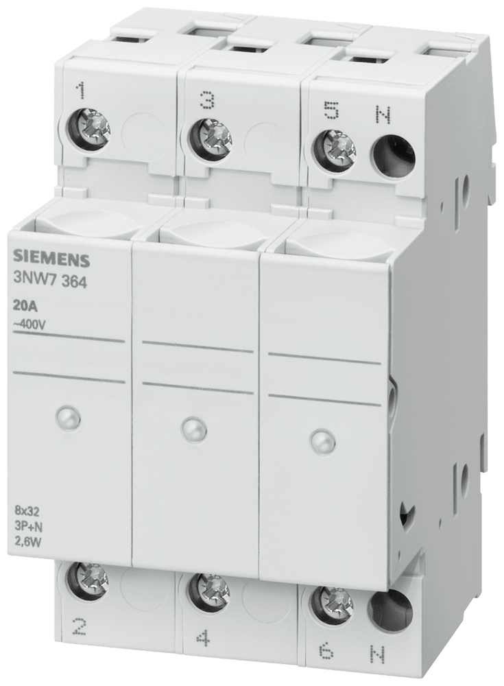 SIEMENS - SIE3NW7364 BASE SEZ.XFUS.8,5X31,5 20A 3P+N SEGN.3U - 3NW7364