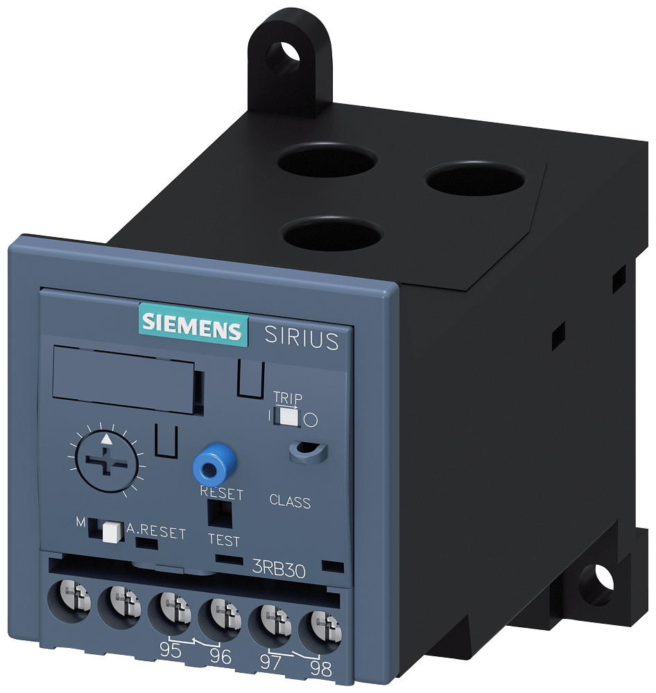 relè di sovraccarico 20...80 A elettronico per protezione motore grandezza costruttiva S2, CLASS 10E montaggio separato circuito principale: trasformatore a foro passante circuito ausiliario: a vite reset manuale-automatico relè di sovraccarico elettronico SIRIUS 3RB3 per la protezione in funzione della corrente di utilizzatori con avviamento normale e pesante contro un surriscaldamento eccessivo causato da sovraccarico, asimmetria delle fasi o mancanza di fase. Grazie agli ampi campi di regolazione della corrente e alle diverse caratteristiche di sgancio, già pochi tipi di apparecchi possono soddisfare le esigenze di intere serie costruttive di motori. La loro potenza dissipata ridotta comporta unalta efficienza energetica e un basso riscaldamento nel quadro elettrico. Sono ovviamente disponibili omologazioni internazionali (ad es. IEC e UL/CSA) ed esecuzioni per applicazioni in aree a rischio di esplosione (ATEX). Fornibili con diversi campi di regolazione dello sganciatore di sovraccarico e con diverse classi di sgancio. Essi sono disponibili con morsetti a vite o a molla per un collegamento rapido, esente da manutenzione e resistente alle vibrazioni nonché per montaggio separato. Gli accessori sono omogeneamente adatti pertutte le grandezze costruttive da S00 a S3. Semplice, efficiente, sempre attuale - il sistema modulare SIRIUS.