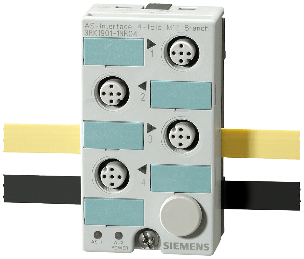 partenza AS-Interface M12 quadrupla U_ASI e Uaux, 4 x prese M12 IP67 fornitura incl. piastra di montaggio AS-Interface - lo standard di bus di campo intelligente.