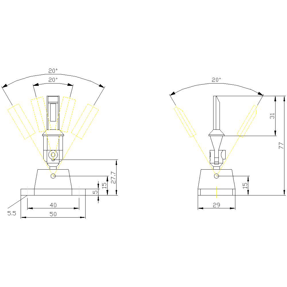 azionatore separato, azionatore radiale universale esecuzione HEAVY DUTY verticale e orizzontale impostabile, lunghezza = 77 mm per interruttori di posizione con blocco di ritenuta 3SE5312/3SE5322 e AS-i 3SF13 e interruttori di posizione con azionatore separato 3SE51/3SE52 e AS-i con azionatore 3SF11/3SF12 separato attuatore SIRIUS 3SE5 per il rilevamento di posizione di parti di macchina e per la sorveglianza della posizione di dispositivi di protezione. La struttura modulare degli interruttori di posizione 3SE5 consente una molteplicità di varianti con un numero ridotto di tipi da magazzino. Lampia varietà di connettori e rotelle consente di soddisfare tutte le esigenze nella quotidianità industriale. LED segnalano lo stato attuale dellapparecchio. Grazie alla tecnica di collegamento rapida i tempi di cablaggio risultano notevolmente ridotti. Punti di commutazione e fissaggio secondo EN 50047 e EN 50041. Gli apparecchi hanno omologazioni internazionali (IEC, UL). Con le corrispondenti configurazioni diinterruttore si possono soddisfare i massimi requisiti di sicurezza secondo PL e o SIL 3. Lelettronica ASIsafe integrata comporta un ridotto assorbimento di corrente. Sono disponibili diverse grandezze di custodia, con diversi contatti, in plastica o in metallo o in forma costruttiva compatta. Alcune varianti sono disponibili opzionalmente con visualizzazione di stato a LED e connettore M12. La serie 3SF1 con collegamento diretto al sistema di bus AS-Interface completa la gamma di prodotti. Come accessori sono disponibili, a seconda dellesecuzione, testine di comando e connettori nonché ulteriori accessori di montaggio/collegamento. Safety is a SIRIUS business.