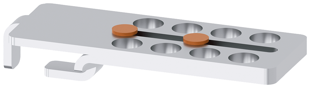 inserto di blocco, accessori per interruttori di posizione con azionatore separato, con e senza blocco di ritenuta 3SE51/2/3 e 3SF11/2/3 in lamiera di acciaio inox per 8 lucchetti staffa diametro max. 8,5 mm Safety is a SIRIUS business.