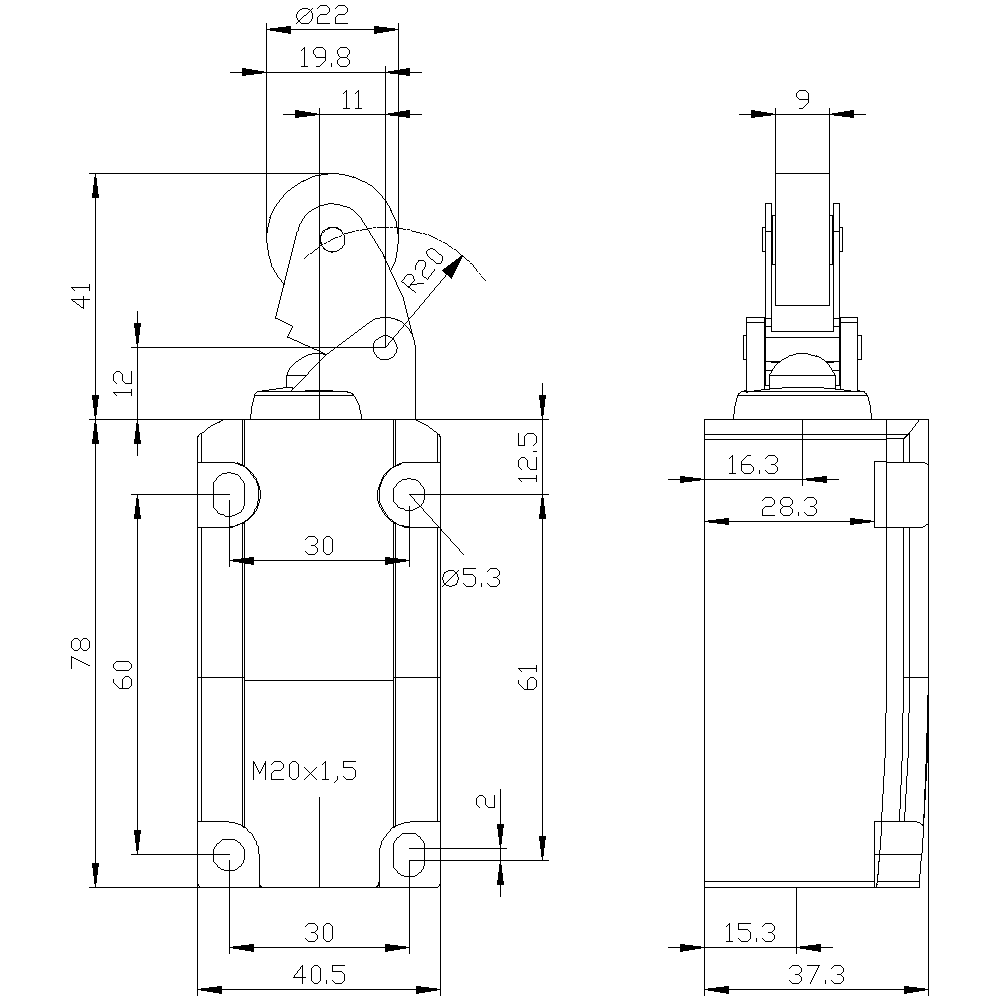 Höhe des Sensors - 37.3 mm