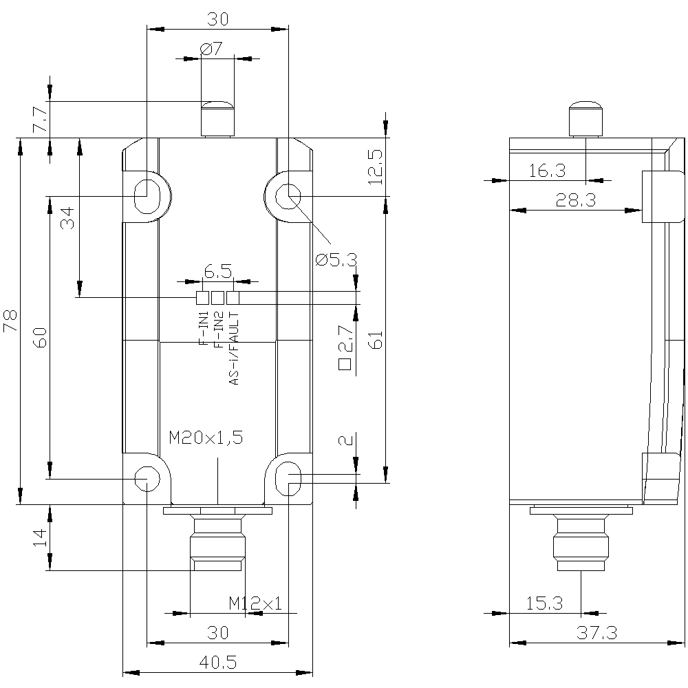 Höhe des Sensors - 37.3 mm