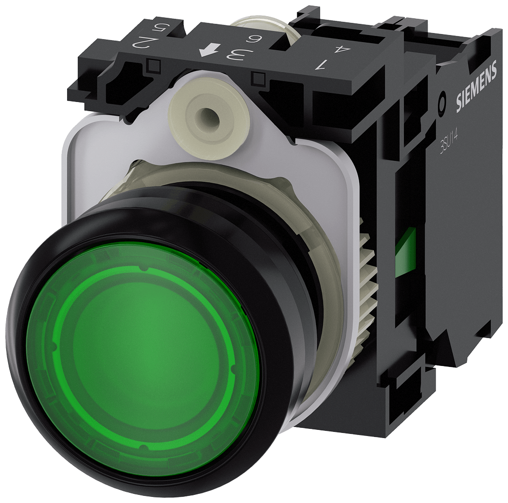 SIEMENS - SIE3SU11060AB401BA0 PULS.LUM.PIATTO VERDE LED 230V AC 1NA - 3SU11060AB401BA0