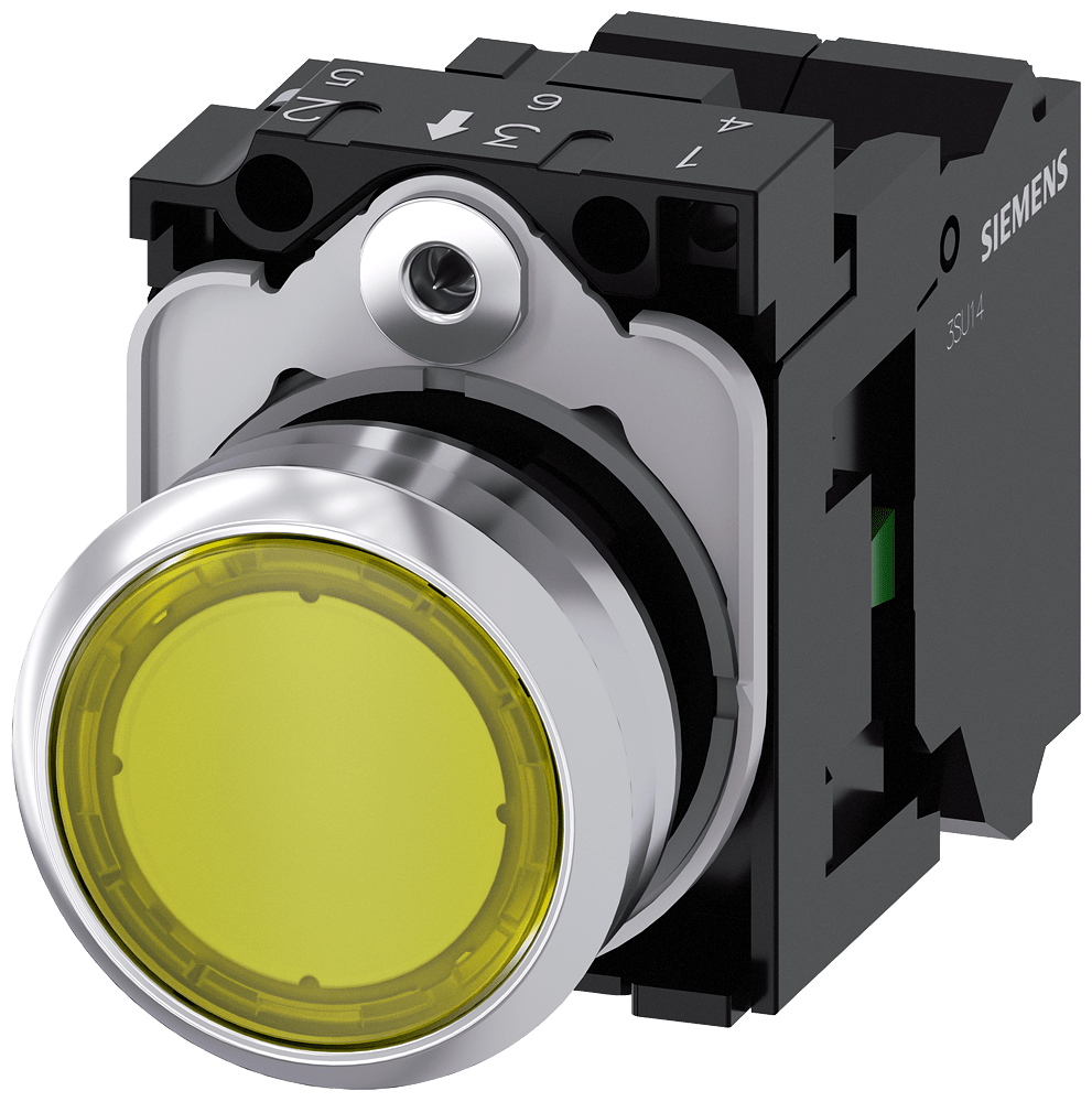 SIEMENS - SIE3SU11530AB303BA0 PULS.LUM.PIATTO GIALLO LED 110V AC 1NA - 3SU11530AB303BA0