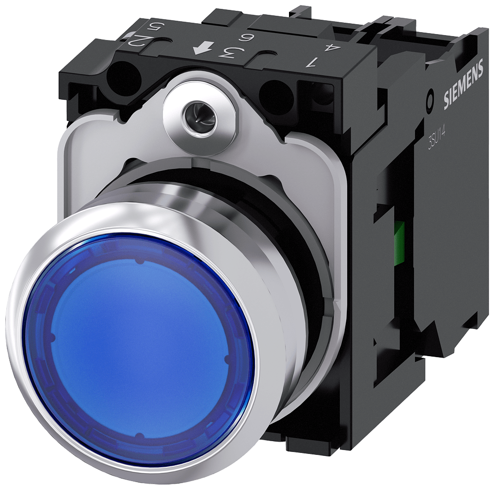 SIEMENS - SIE3SU11560AB501BA0 PULS.LUM.PIATTO BLU LED 230V AC 1NA - 3SU11560AB501BA0