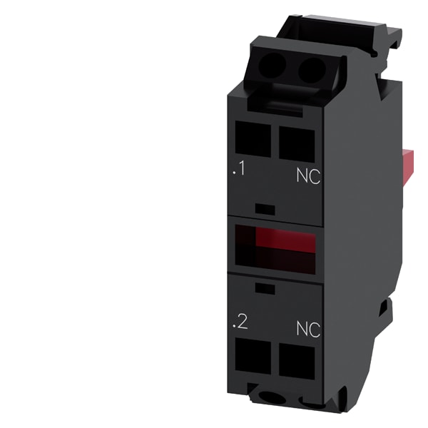 modulo di contatti con 1 contatto, 1 NC, contatti dorati, morsetto a molla, Per montaggio su piastra frontale Modulo di contatti SIRIUS ACT per la commutazione di circuiti ausiliari. Siemens offre, sotto il nome commerciale SIRIUS ACT, un portfolio esclusivo di dispositivi di comando e segnalazione con omologazioni di prodotto per il mercato mondiale in tre moderne serie di design in robusto metallo puro e plastica pregiata.Linnovativo concetto di innesto a scatto semplifica talmente il montaggio che pereseguirlo basta una sola mano e non servono attrezzi speciali. Per i fori di montaggio sono sufficienti semplici fori non scanalati, essendo già integrata una protezione antirotazione al 100 %.Grazie al grado di protezione elevato i robusti apparecchi sono adatti allimpiego industriale e in ambiente esterno. È persino possibile la pulizia con getto ad alta pressione. Né polvere, né oli, né liscivia possono comprometterne il funzionamento affidabile.Oltre che con il cablaggio standard, gli apparecchi possono essere collegati al controllore anche tramite PROFINET, AS-Interface oppure IO-Link. Potete così ridurre il vostro onere di cablaggio, minimizzare le fonti di errore e ottenere maggiore flessibilità.Il configuratore online grafico supporta in modo confortevole la scelta e lordinazione di singoli apparecchi, pulsantiere e iscrizioni. È disponibile una documentazione completa (ad es. manuale, dati 3D, schema di collegamento). Esecuzioni fornibili: diverse funzioni di commutazione, diversi tipi di collegamento e montaggio, a 1 e 2 poli. SIRIUS ACT - Performance in Action nel comando e nella segnalazione. Semplici da montare, altamente performanti, semplicemente perfetti.