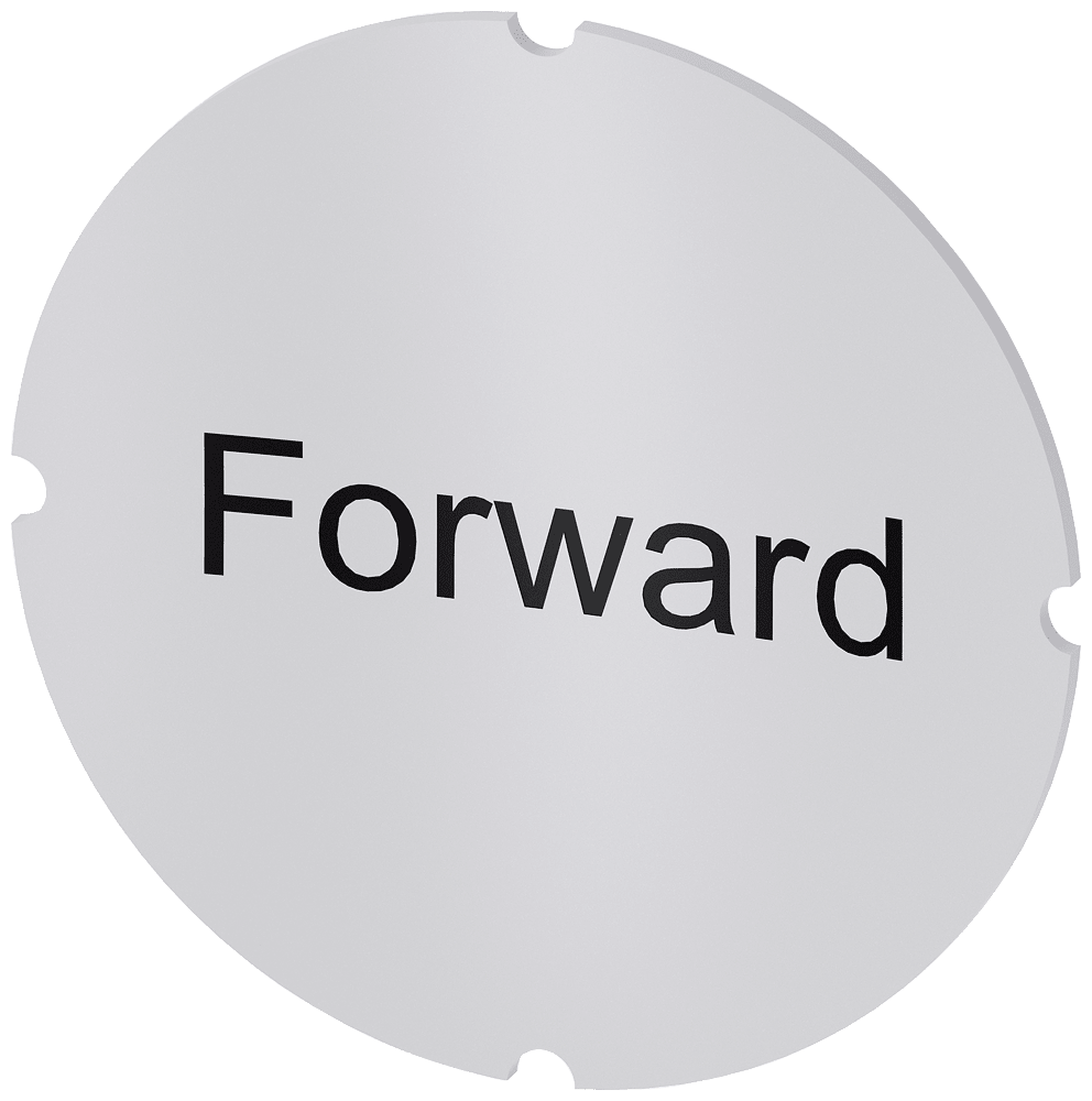 inserto piatto per pulsante luminoso, rotondo, opalescente con scritta nera. con iscrizione: Forward Inserto piatto per la siglatura dei dispositivi di comando e segnalazione SIRIUS ACT. Siemens offre, sotto il nome commerciale SIRIUS ACT, un portfolio esclusivo di dispositivi di comando e segnalazione con omologazioni di prodotto per il mercato mondiale in tre moderne serie di design in robusto metallo puro e plastica pregiata.Linnovativo concetto di innesto a scatto semplifica talmente il montaggio cheper eseguirlo basta una sola mano e non servono attrezzi speciali. Per i fori di montaggio sono sufficienti semplici fori non scanalati, essendo già integrata una protezione antirotazione al 100 %.Grazie al grado di protezione elevato i robusti apparecchi sono adatti allimpiego industriale e in ambiente esterno. È persino possibile la pulizia con getto ad alta pressione. Né polvere, né oli, né liscivia possono comprometterne il funzionamento affidabile.Oltre che con il cablaggio standard, gli apparecchi possono essere collegati al controllore anche tramite PROFINET, AS-Interface oppure IO-Link. Potete così ridurre il vostro onere di cablaggio, minimizzare le fonti di errore e ottenere maggiore flessibilità.Il configuratore online grafico supporta in modoconfortevole la scelta e lordinazione di singoli apparecchi, pulsantiere e iscrizioni. È disponibile una documentazione completa (ad es. manuale, dati 3D, schema di collegamento). Ampia gamma di accessori opzionali (ad es. targhette identificative, per protezione e accesso, operatori, accessori per pulsantiere). SIRIUS ACT - Performance in Action nel comando e nella segnalazione. Semplici da montare, altamente performanti, semplicemente perfetti.