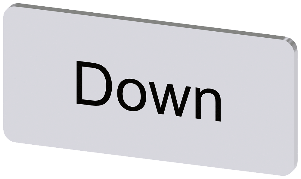 targhetta identificativa per fissaggio a scatto o incollaggio sul portatarghetta, grandezza della targhetta 12,5x27 mm, targhetta argento, iscrizione nera, con iscrizione: Down Targhetta identificativa per la siglatura dei dispositivi di comando e segnalazione SIRIUS ACT. Siemens offre, sotto il nome commerciale SIRIUS ACT, un portfolio esclusivo di dispositivi di comando e segnalazione con omologazioni di prodotto per il mercato mondiale in tre moderne serie di design in robusto metallo puro e plastica pregiata.Linnovativo concetto di innesto a scatto semplifica talmente il montaggio che per eseguirlo basta una sola mano e non servono attrezzi speciali. Per i fori di montaggio sono sufficienti semplici fori non scanalati, essendo già integrata una protezione antirotazione al 100 %.Grazie al grado di protezione elevato i robusti apparecchi sono adatti allimpiego industriale e in ambiente esterno. È persino possibile la pulizia con getto ad alta pressione. Né polvere, né oli, né liscivia possono comprometterne il funzionamento affidabile.Oltre che con il cablaggio standard, gli apparecchi possono essere collegati al controllore anche tramite PROFINET, AS-Interface oppure IO-Link. Potete così ridurre il vostro onere di cablaggio, minimizzare le fonti di errore e ottenere maggiore flessibilità.Il configuratore online grafico supporta in modo confortevole la scelta e lordinazione di singoli apparecchi, pulsantiere e iscrizioni. È disponibile una documentazione completa (ad es. manuale, dati 3D, schema di collegamento). Ampia gamma di accessori opzionali (ad es. targhette identificative, per protezione e accesso, operatori, accessori per pulsantiere). SIRIUS ACT - Performance in Action nel comando e nella segnalazione. Semplici da montare, altamente performanti, semplicemente perfetti.