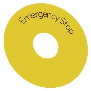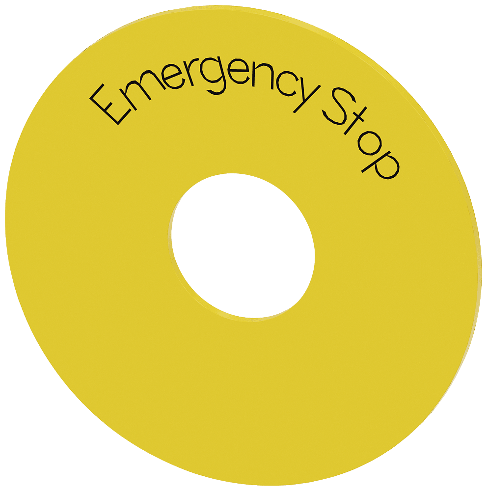 Rondella per arresto di emergenza, giallo, con iscrizione: EMERGENCY STOP, diametro esterno 75 mm, diametro interno 22,5 mm, spessore 2 mm Disco targhetta per ARRESTO DI EMERGENZA per la siglatura dei dispositivi di comando e segnalazione SIRIUS ACT. Siemens offre, sotto il nome commerciale SIRIUS ACT, un portfolio esclusivo di dispositivi di comando e segnalazione con omologazioni di prodotto per il mercato mondiale in tre moderne serie di design in robusto metallo puro e plastica pregiata.Linnovativo concetto di innesto a scatto semplifica talmente il montaggio che per eseguirlo basta una sola mano e non servono attrezzi speciali. Per i fori di montaggio sono sufficienti semplici fori non scanalati, essendo già integrata una protezione antirotazione al100 %.Grazie al grado di protezione elevato i robusti apparecchi sono adatti allimpiego industriale e in ambiente esterno. È persino possibile la pulizia con getto ad alta pressione. Né polvere, né oli, né liscivia possono comprometterne il funzionamentoaffidabile.Oltre che con il cablaggio standard, gli apparecchi possono essere collegati al controllore anche tramite PROFINET, AS-Interface oppure IO-Link. Potete così ridurre il vostro onere di cablaggio, minimizzare le fonti di errore e ottenere maggiore flessibilità.Il configuratore online grafico supporta in modo confortevole la scelta e lordinazione di singoli apparecchi, pulsantiere e iscrizioni. È disponibile una documentazione completa (ad es. manuale, dati 3D, schema di collegamento). Ampia gamma di accessori opzionali (ad es. targhette identificative, per protezione e accesso, operatori, accessori per pulsantiere). SIRIUS ACT- Performance in Action nel comando e nella segnalazione. Semplici da montare, altamente performanti, semplicemente perfetti.