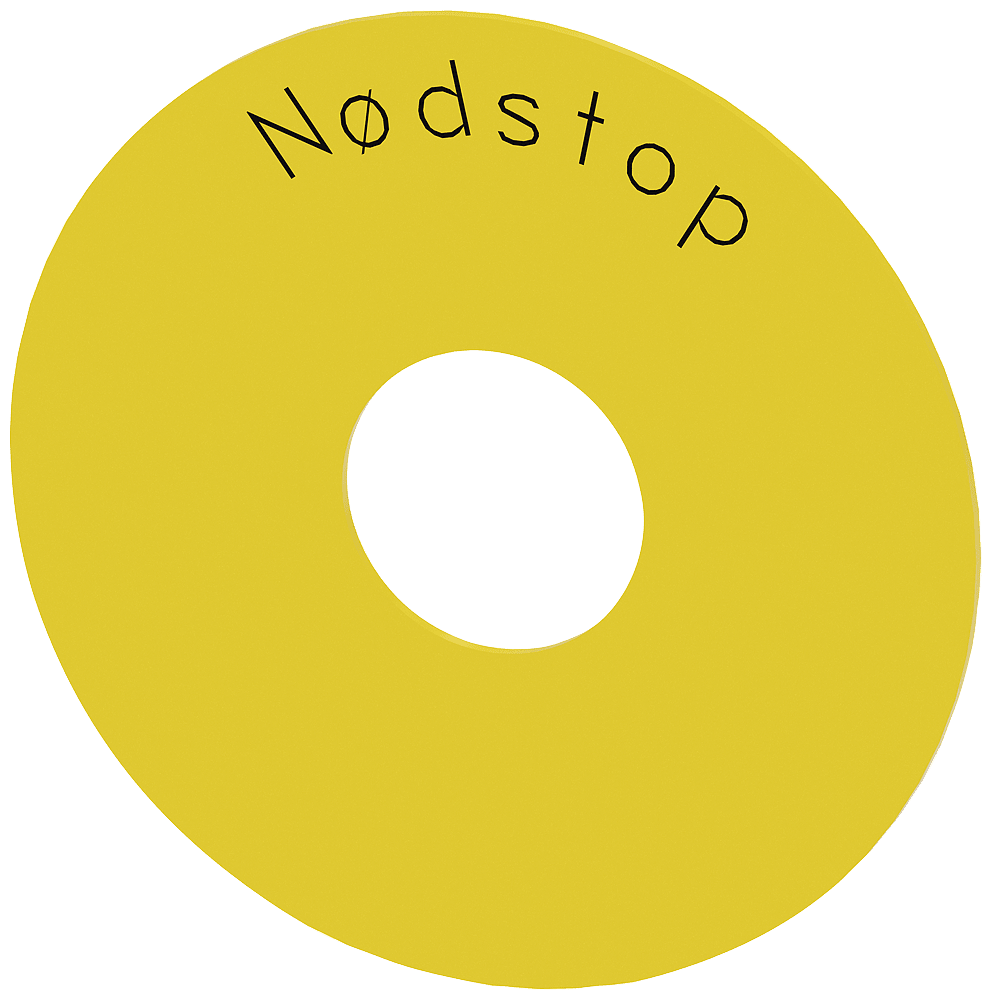 targhetta con dicitura rotonda, per pulsante a fungo di ARRESTO DI EMERGENZA, giallo, autoadesivo, diametro esterno 75 mm, diametro interno 23 mm, con iscrizione: Nodstop Targhetta rotonda per ARRESTO DI EMERGENZA per la siglatura dei dispositivi di comando e segnalazione SIRIUS ACT. Siemens offre, sotto il nome commerciale SIRIUS ACT, un portfolio esclusivo di dispositivi di comando e segnalazione con omologazioni di prodotto per il mercato mondiale in tre moderne serie di design in robusto metallo puroe plastica pregiata.Linnovativo concetto di innesto a scatto semplifica talmente il montaggio che per eseguirlo basta una sola mano e non servono attrezzi speciali. Per i fori di montaggio sono sufficienti semplici fori non scanalati, essendo già integrata una protezione antirotazione al 100 %.Grazie al grado di protezione elevato i robusti apparecchi sono adatti allimpiego industriale e in ambiente esterno. È persino possibile la pulizia con getto ad alta pressione. Né polvere, né oli, né liscivia possono comprometterne il funzionamento affidabile.Oltre che con il cablaggio standard, gli apparecchi possono essere collegati al controllore anche tramite PROFINET, AS-Interface oppure IO-Link. Potete così ridurre il vostro onere di cablaggio, minimizzare lefonti di errore e ottenere maggiore flessibilità.Il configuratore online grafico supporta in modo confortevole la scelta e lordinazione di singoli apparecchi, pulsantiere e iscrizioni. È disponibile una documentazione completa (ad es. manuale, dati 3D, schema di collegamento). Ampia gamma di accessori opzionali (ad es. targhette identificative, per protezione e accesso, operatori, accessori per pulsantiere). SIRIUS ACT - Performance in Action nel comando e nella segnalazione. Semplici da montare, altamente performanti, semplicemente perfetti.